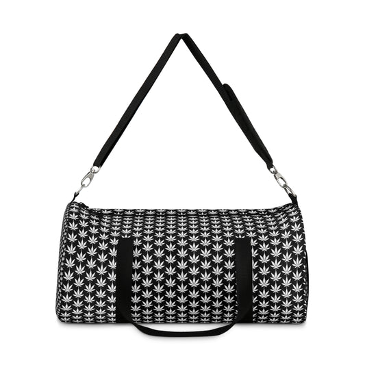 White Cannabis Leaf Black Duffel Bag