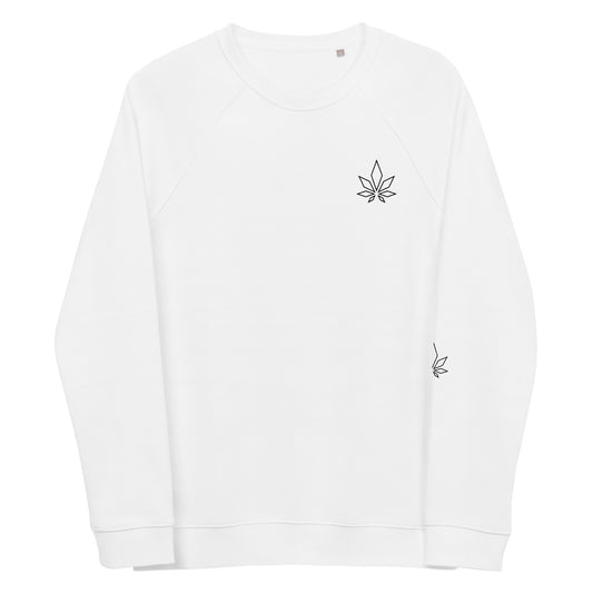 White And Black Weed Leaf Unisex Organic Raglan Sweatshirt