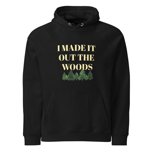 I Made It Out the Woods Unisex Eco Raglan Hoodie – Organic Cotton, Multiple Colors