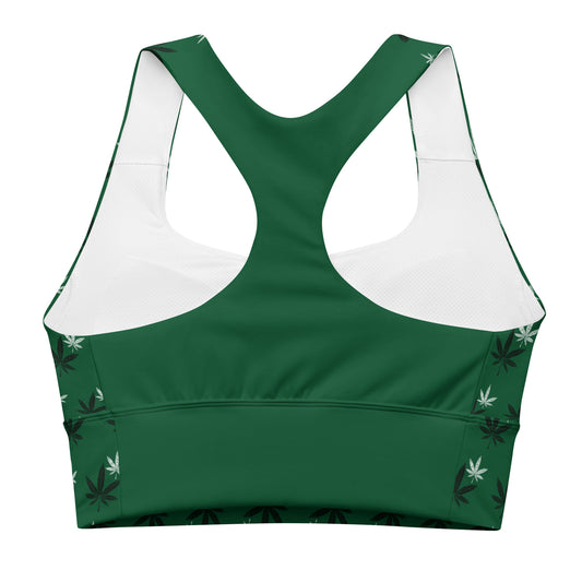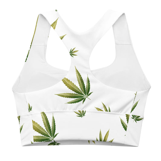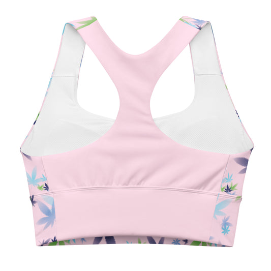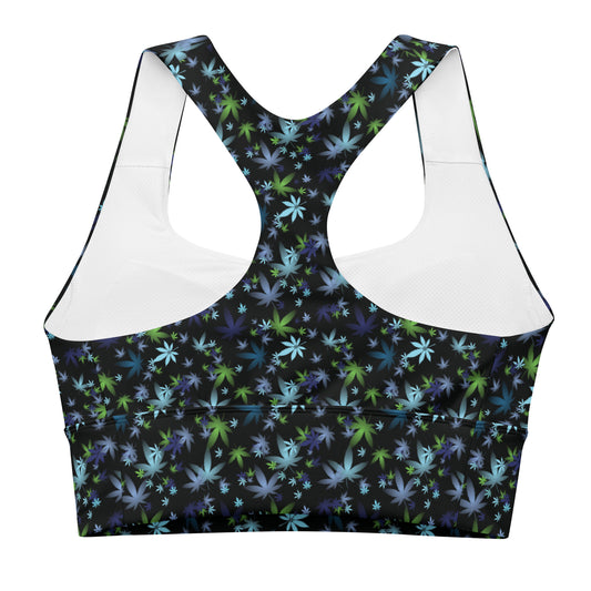 Baby Blue Cannabis Leaf Longline Sports Bra
